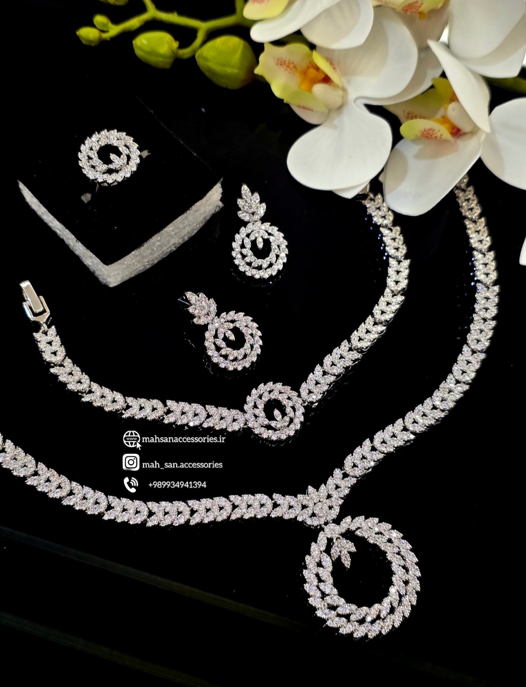 نیم ست کامل عروس مدل ژرویرا مشابه طلا سفید کد XU210 رنگ ثابت