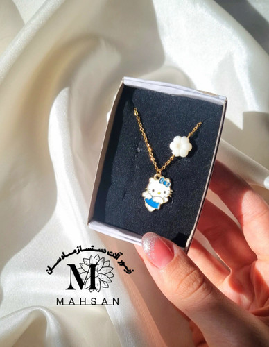 گردنبند کیتی بالدار کیوت دخترانه با گل سفید همراه با جعبه