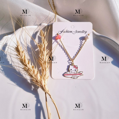 گردنبند کیتی خلبان صورتی با مروارید رنگی مناسب برای هدیه تولد