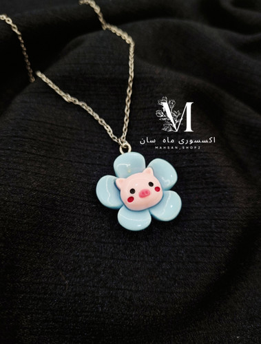 گردنبند گل پنج پر آبی عروسک صورتی