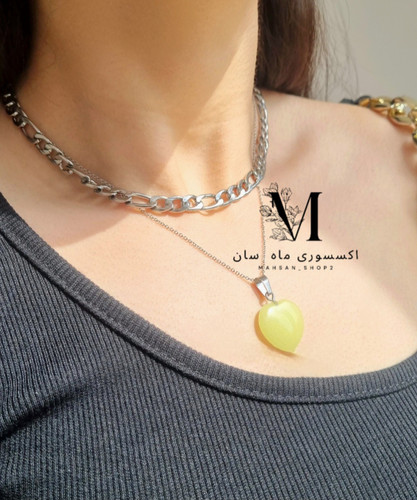 گردنبند قلب شبتاب سبز با زنجیر فیگارو تمام استیل