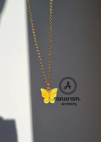 گردنبند دخترانه پروانه رزینی زرد