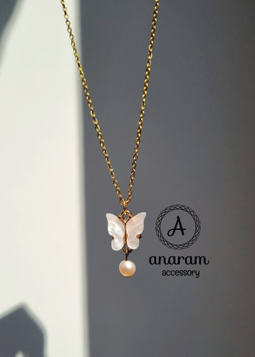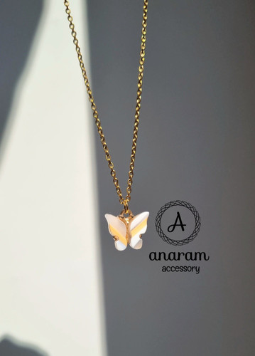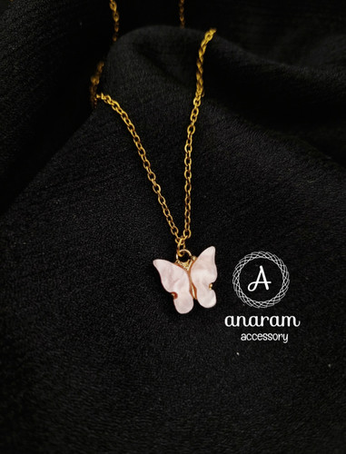 گردنبند دخترانه پروانه رزینی رزگلد صدفی