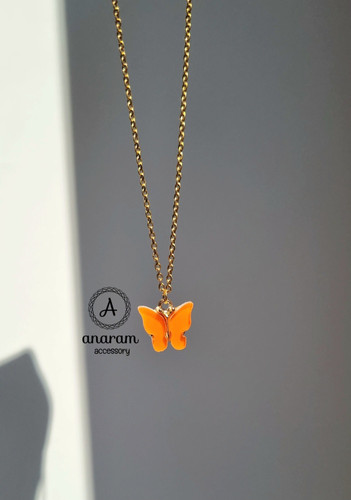 گردنبند دخترانه پروانه رزینی نارنجی