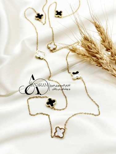 دستبند ونکلیف جواهرصدفی طلایی خیلی خاص هدیه جذاب