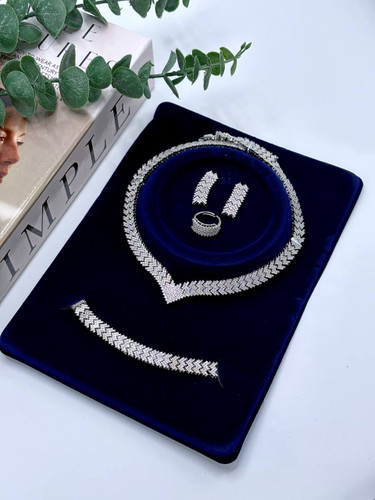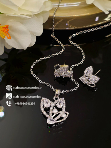 نیم ست کامل عروس ظریف طرح رزالین مشابه طلاسفید کد XU201 رنگ ثابت