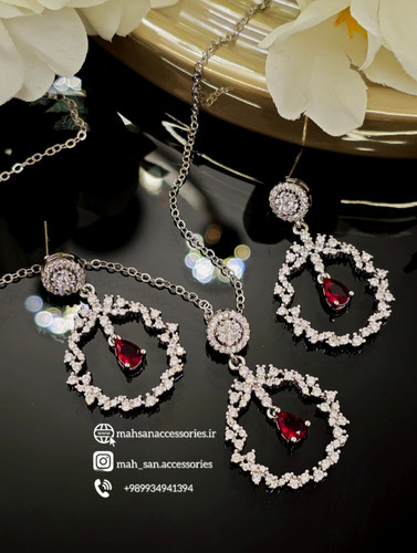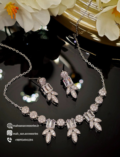 نیم ست جواهری تنیسی فول نگین شیک هدیه خاص و جذاب