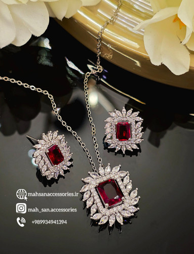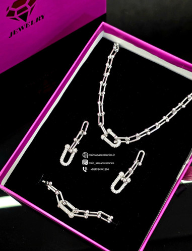 نیم ست ولنتاین زنانه تیفانی رنگ نقره ای درجه یک
