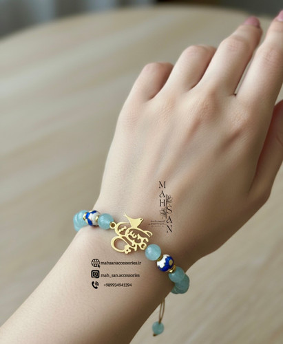 دستبند زنانه پلاک نگین با سنگ رنگ دریا