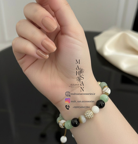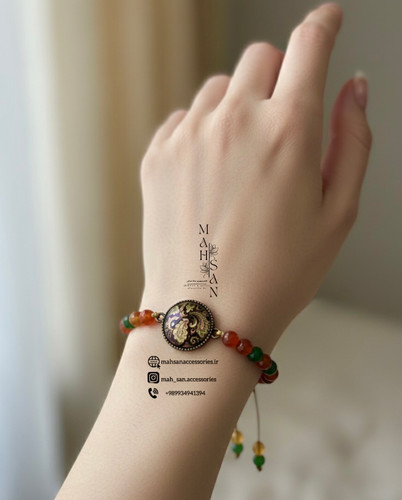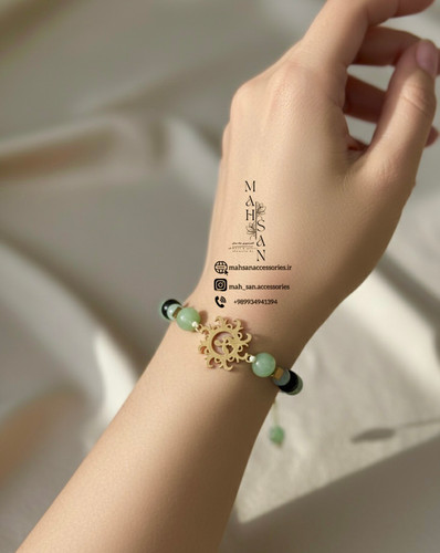 دستبند پلاک نگین با سنگ رنگ طبیعت