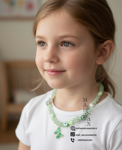 گردنبند دخترانه پروانه سبز با مهره برای دختر کوچولوها