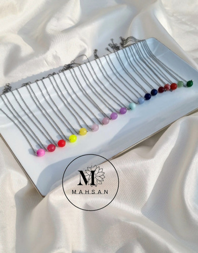 گردنبند زنانه رزینی طرح سنگ رنگارنگ دوطرفه استیل و رنگ ثابت ارسال رایگان