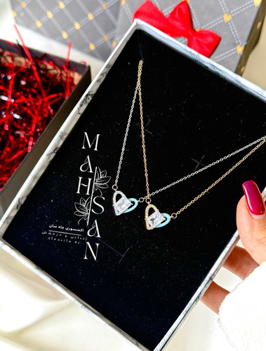گردنبند زنانه قلب و نگین با زنجیر توپی ریز دو ردیفه کد XU5074