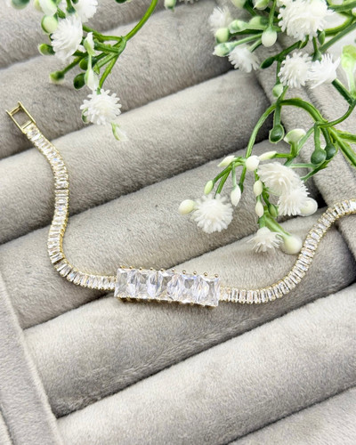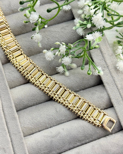 ناموجوددستبند جذاب فول نگین ونکلیف طلایی کد MEN104