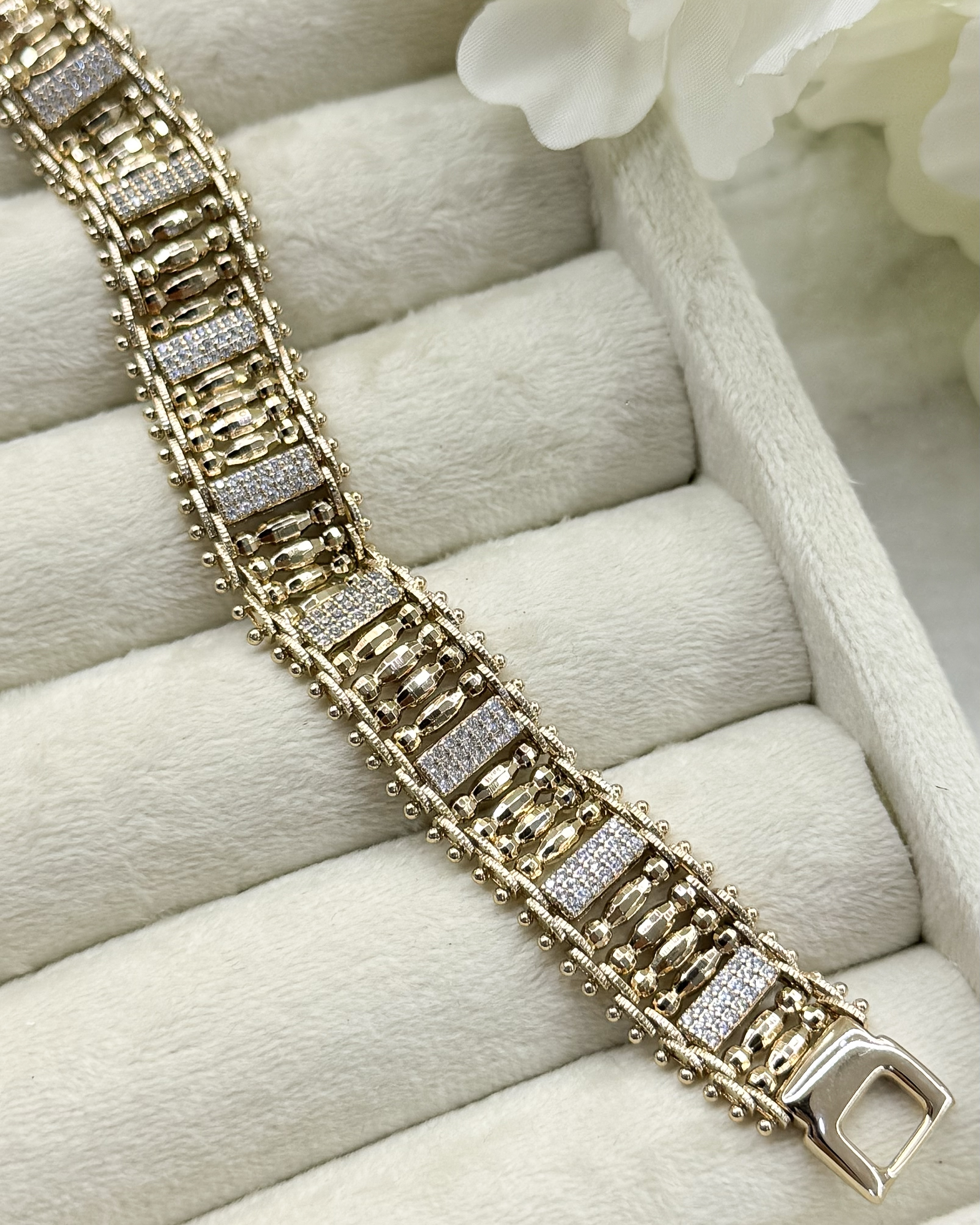 ناموجوددستبند جذاب فول نگین ونکلیف طلایی کد MEN104