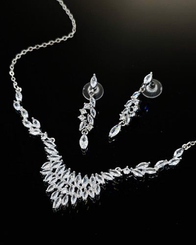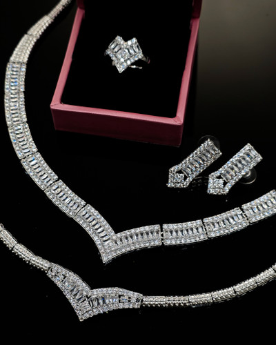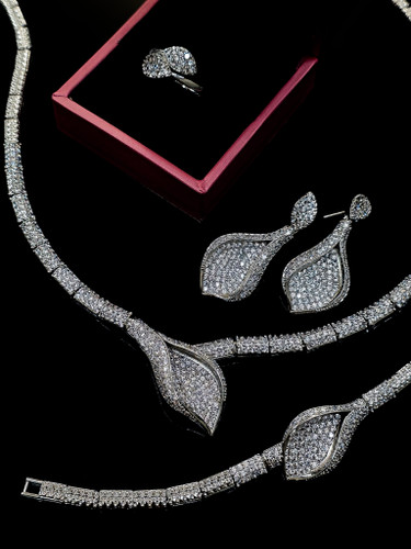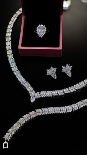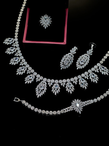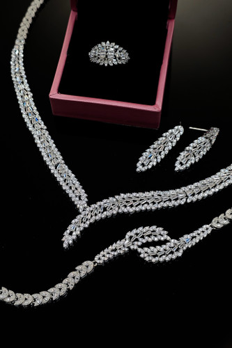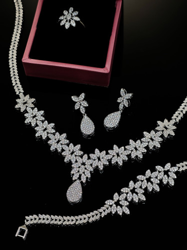 نیم ست کامل عروس مدل ژرویرا مشابه طلا سفید تک موجودی