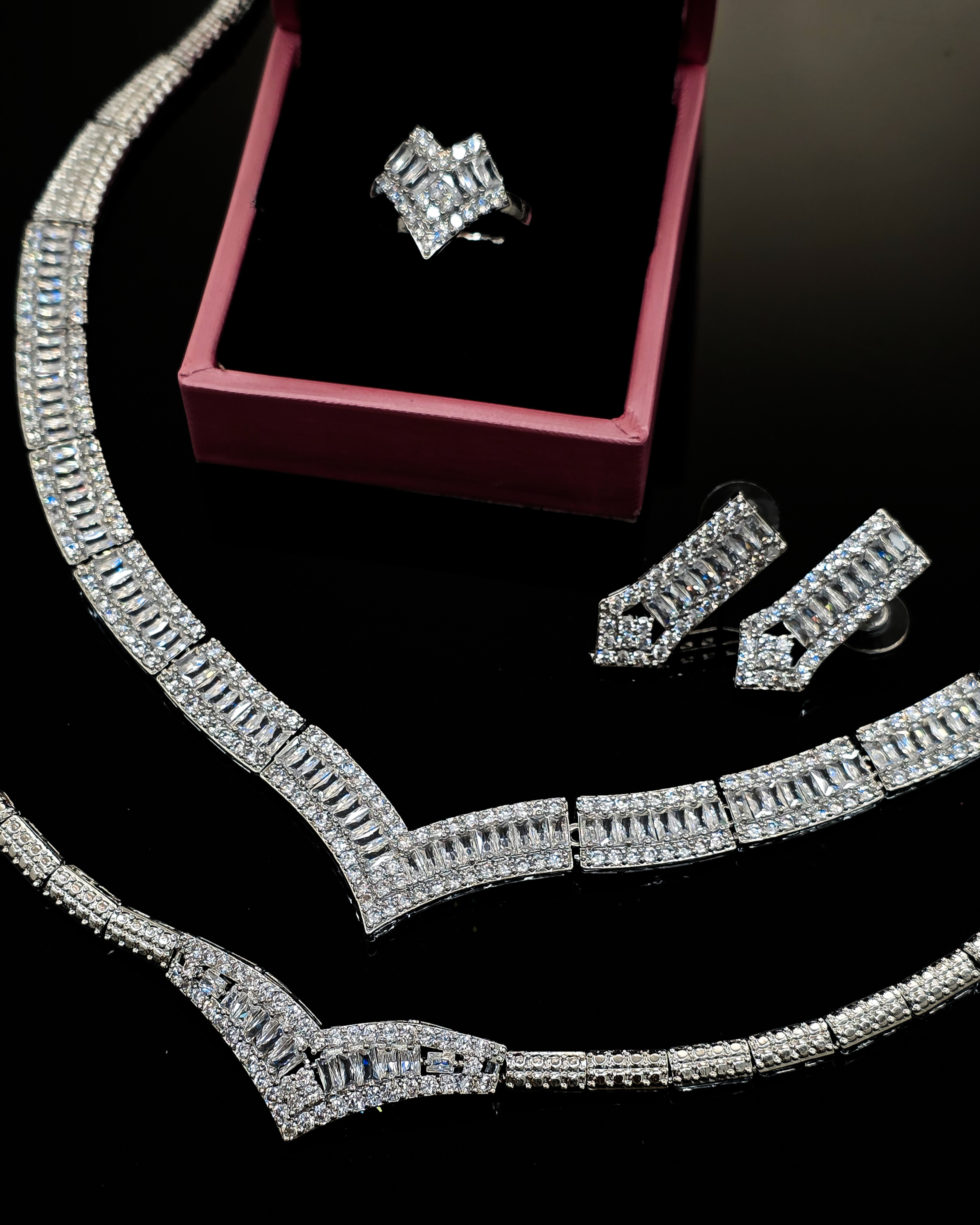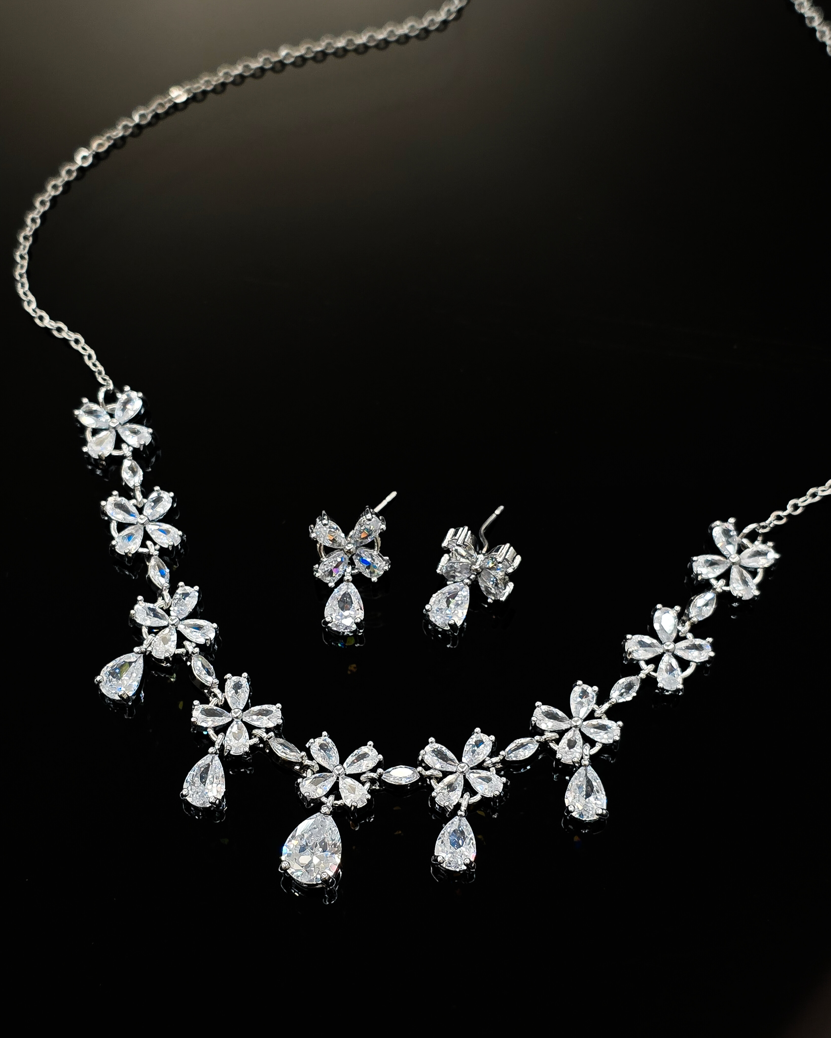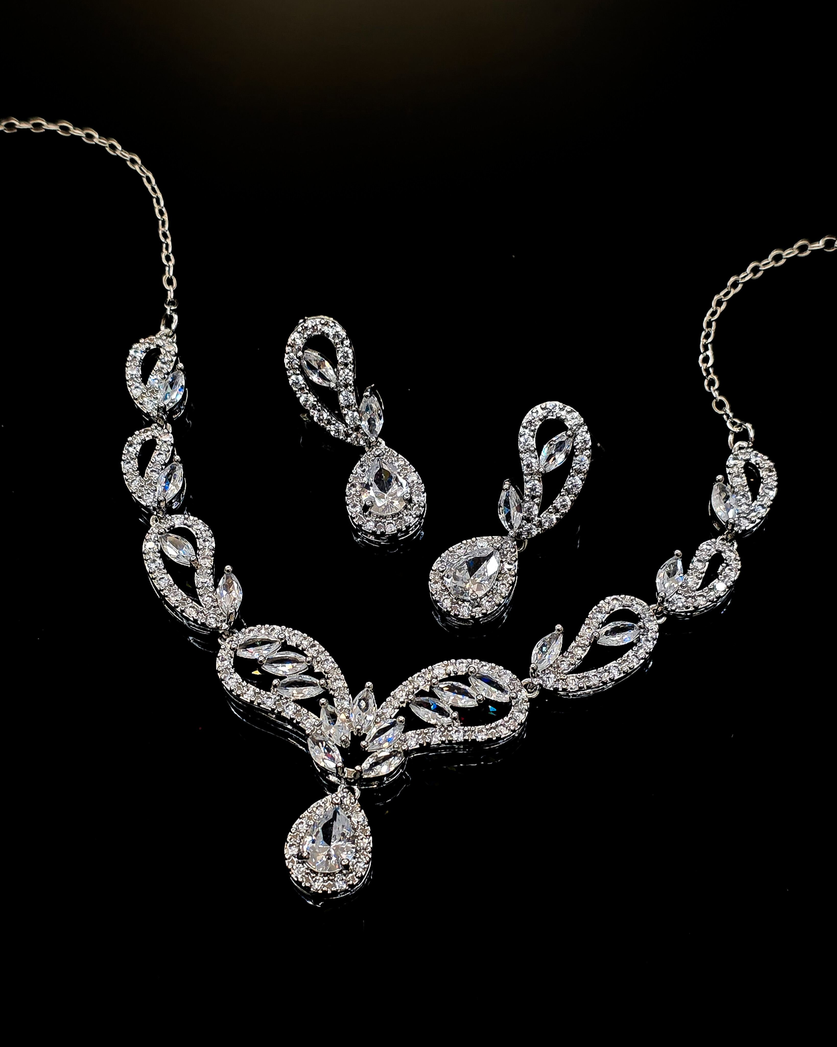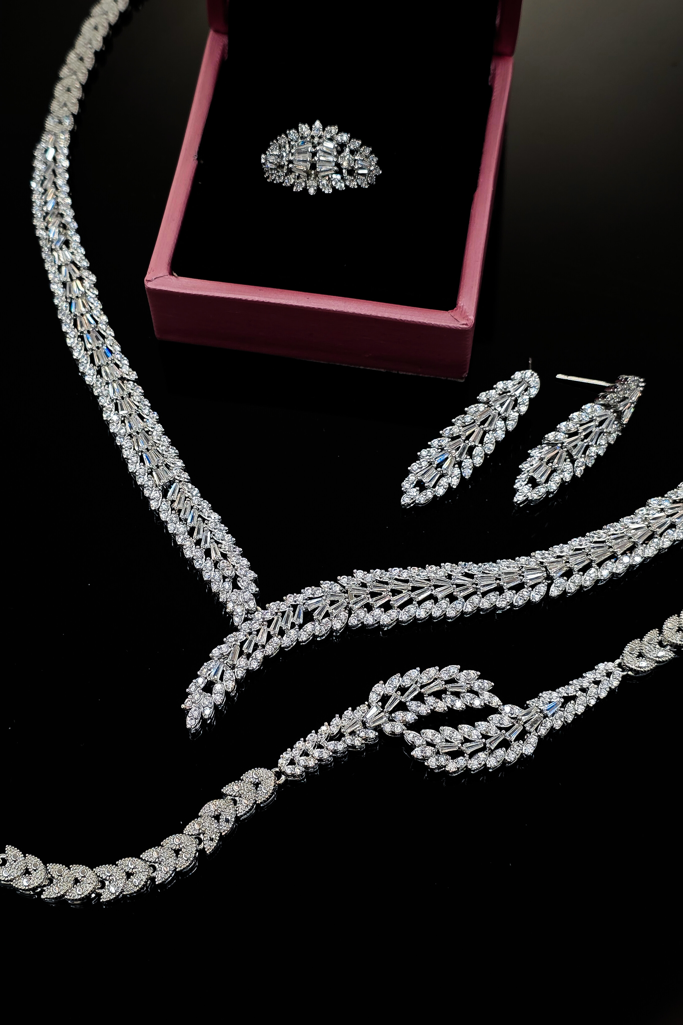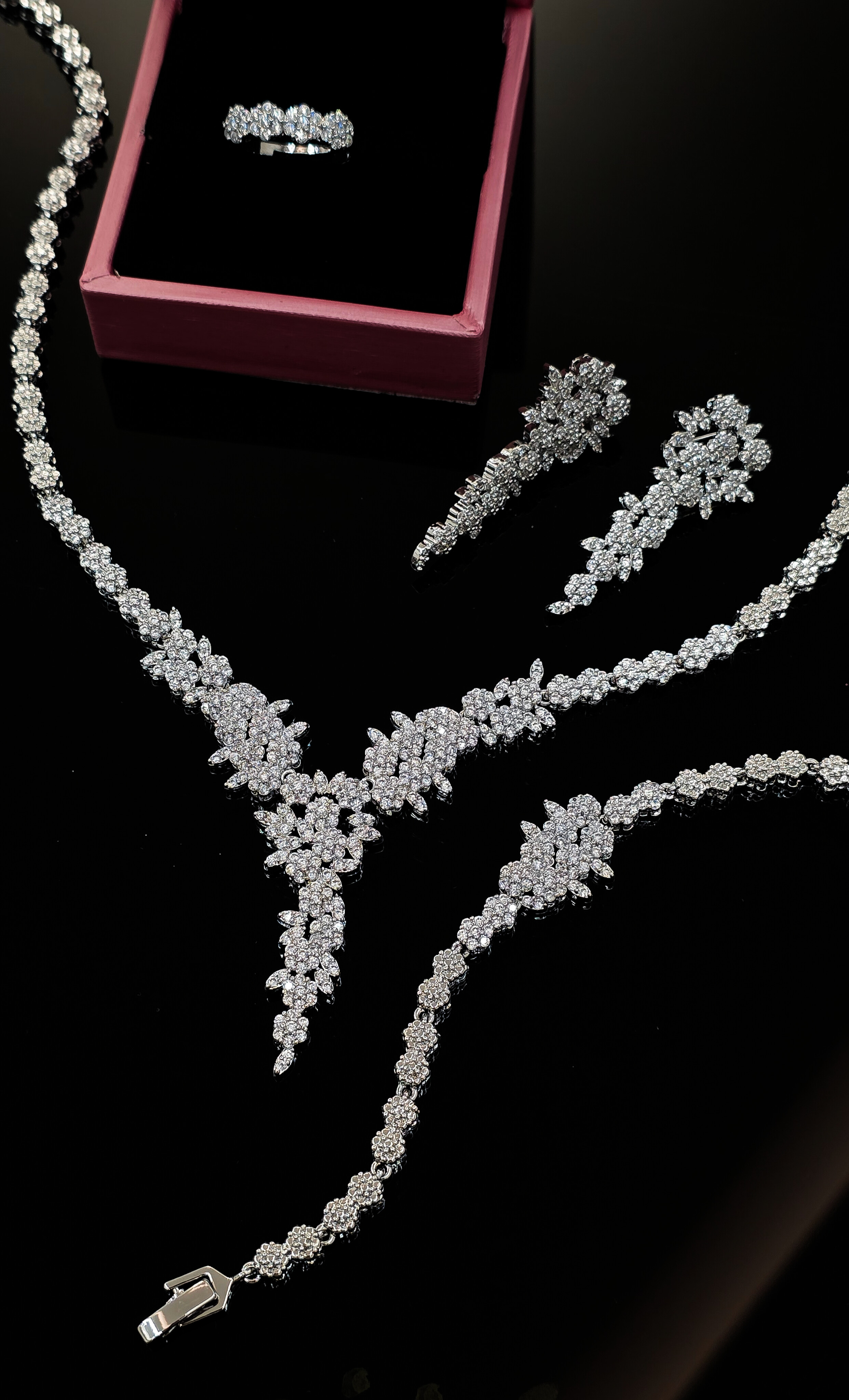 نیم ست کامل عروس مدل ژرویرا مشابه طلا سفید تک موجودی