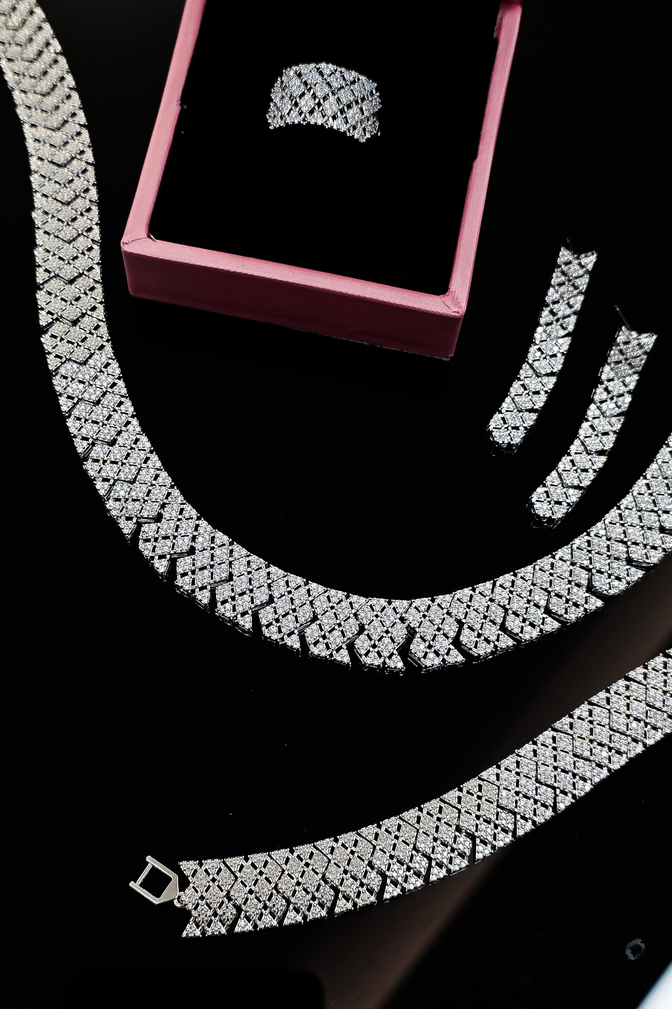 نیم ست کامل عروس ظریف طرح رزالین مشابه طلاسفید کد XU201 رنگ ثابت