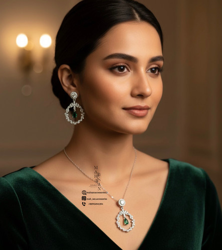 نیم ست زنانه نگین سبز ارسال رایگان