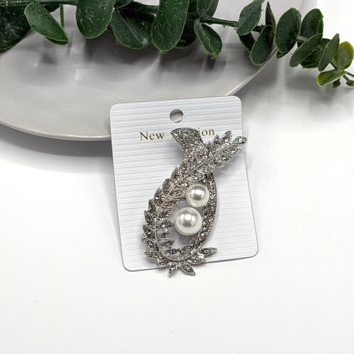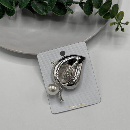 سنجاق سینه مجلسی برگ مروارید نقره ای هدیه خاص و جذاب