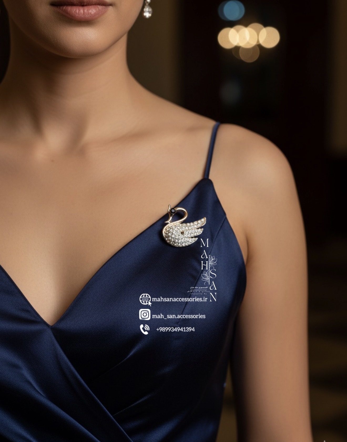سنجاق سینه مجلسی قو هدیه خاص و جذاب طرح دوم موجود