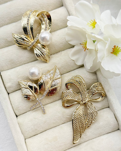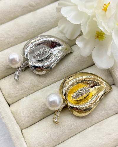 سنجاق سینه مجلسی برگ طلایی مرواریدی