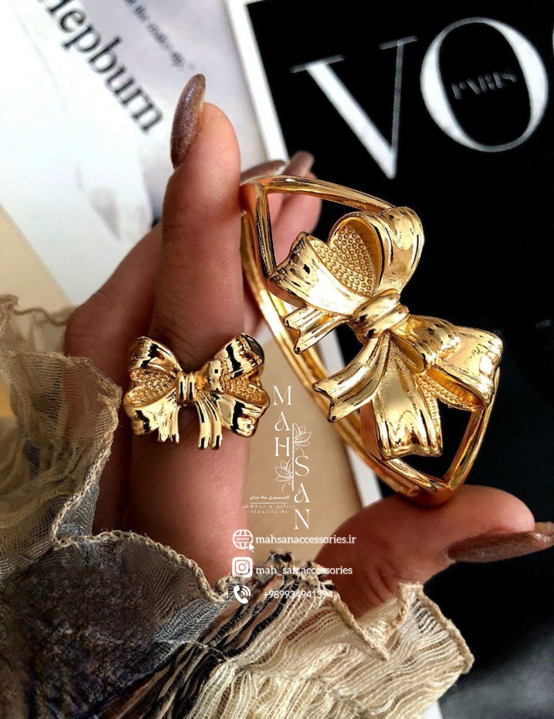 ست پاپیون بنگل و انگشتر زنانه روز هدیه مادر و ولنتاین