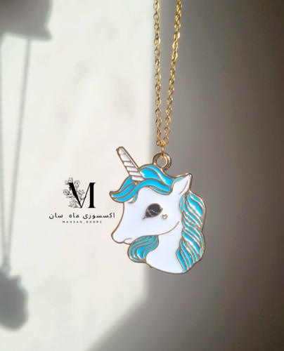 گردنبند یونیکورن تکشاخ آبی رنگ کیوت و بامزه ارسال رایگان