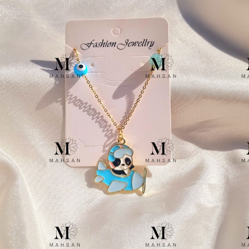 گردنبند پاندا هواپیما سوار با گوی چشم نظر آبی فانتزی و کودکانه