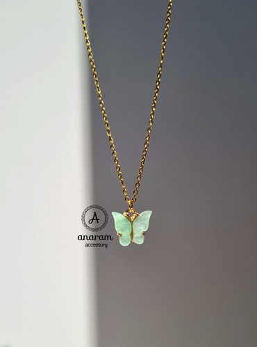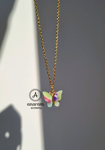 گردنبند دخترانه پروانه رزینی سبز ارسال رایگان