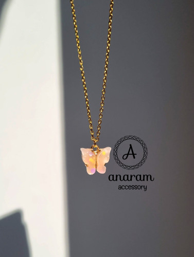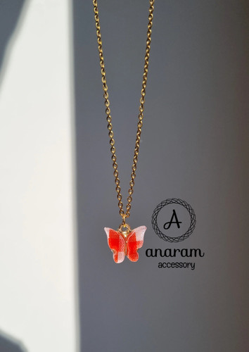 گردنبند دخترانه پروانه رزینی رزگلد صدفی