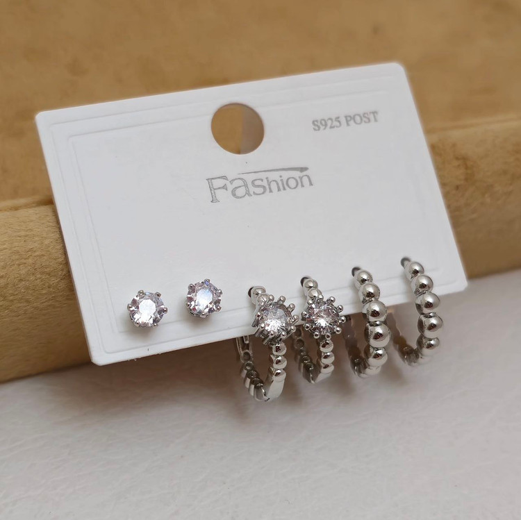 پک گوشواره نگیندار تاشا با آبکاری نقره925 رنگ سیلور
