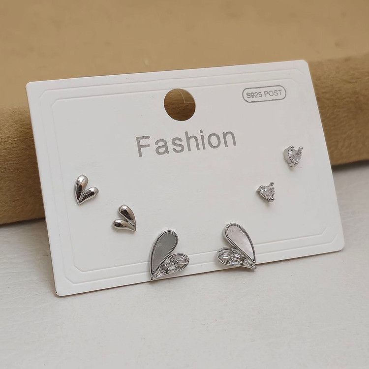 پک گوشواره نگیندار هالان با آبکاری نقره925 رنگ سیلور