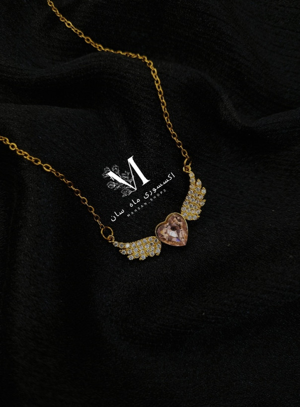 گردنبند قلب صورتی بال فرشته نگیندار طرح Eternity
