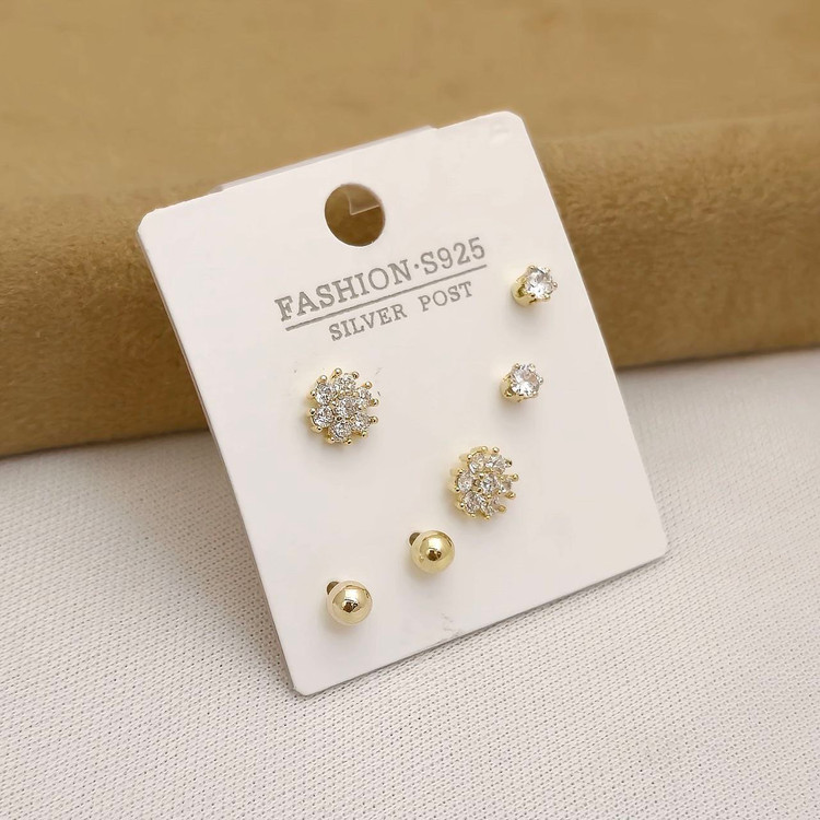 گوشواره گل با آبکاری نقره925 رنگ گلد پک6عددی