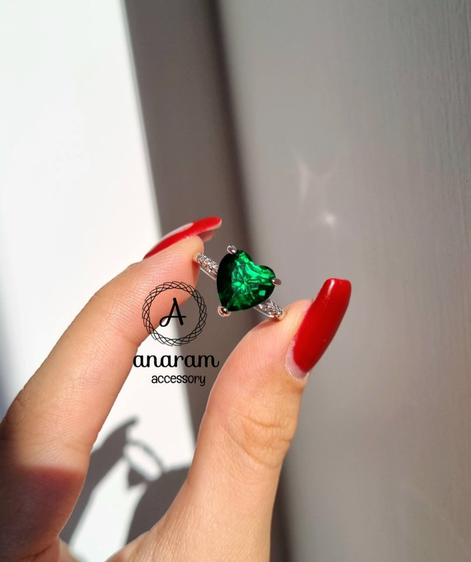 انگشتر زنانه طرح قلب زمردی