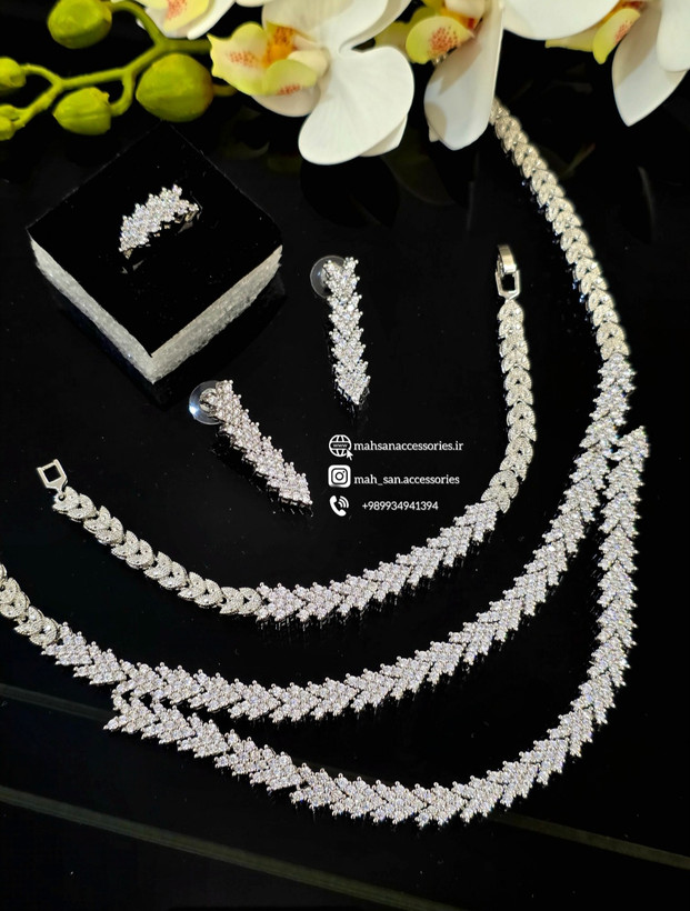 نیم ست عروس مدل طلا سفید طرح رزالیا رنگ ثابت