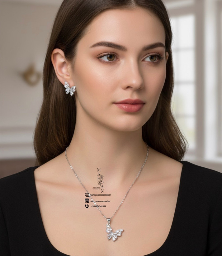نیم ست ظریف پروانه جواهری XU224 هدیه خاص