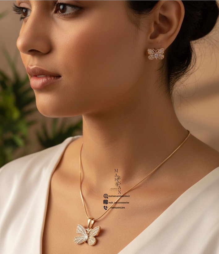 نیم ست زنانه ظریف پروانه ژوپینگ XU226 هدیه خاص ولنتاین و روز مادر