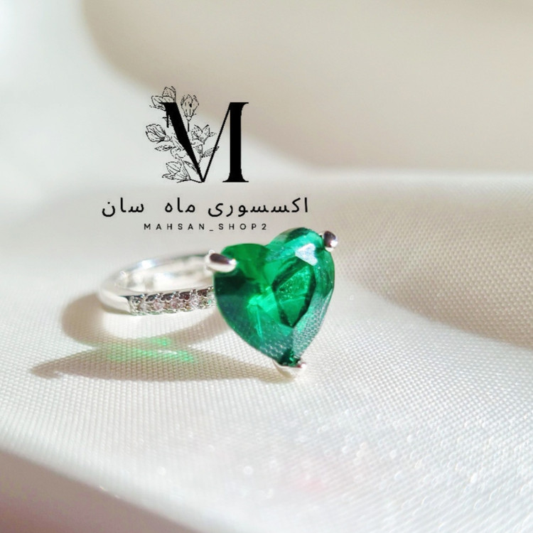 انگشتر ولنتاینی قلب Romantic با نگین سبز