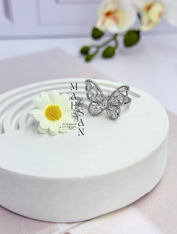 انگشتر زنانه پروانه فول نگین تنیسی فری سایز کد X7030