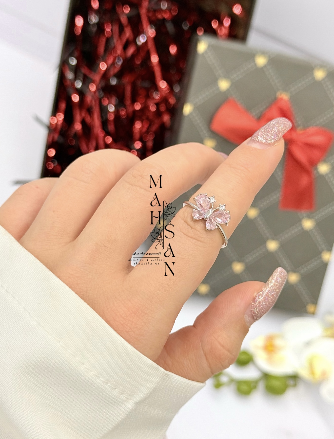 انگشتر پروانه صورتی کد X7099