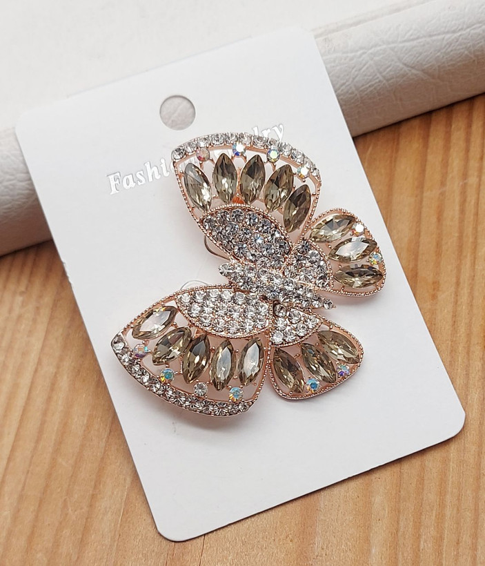 سنجاق سینه زنانه طرح پروانه با نگینهای درخشان و کریستالهای لوکس