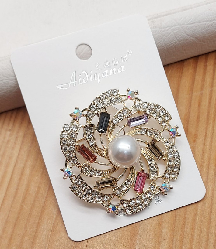 سنجاق سینه زنانه طرح گل رز با نگینهای درخشان و مروارید مرکزی کد 3