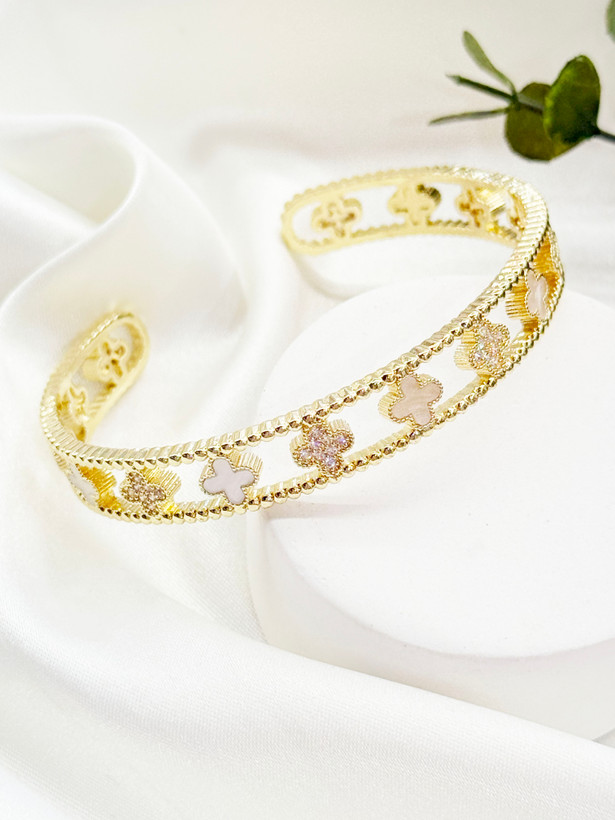 دستبند جذاب فول نگین ونکلیف طلایی کد MEN104