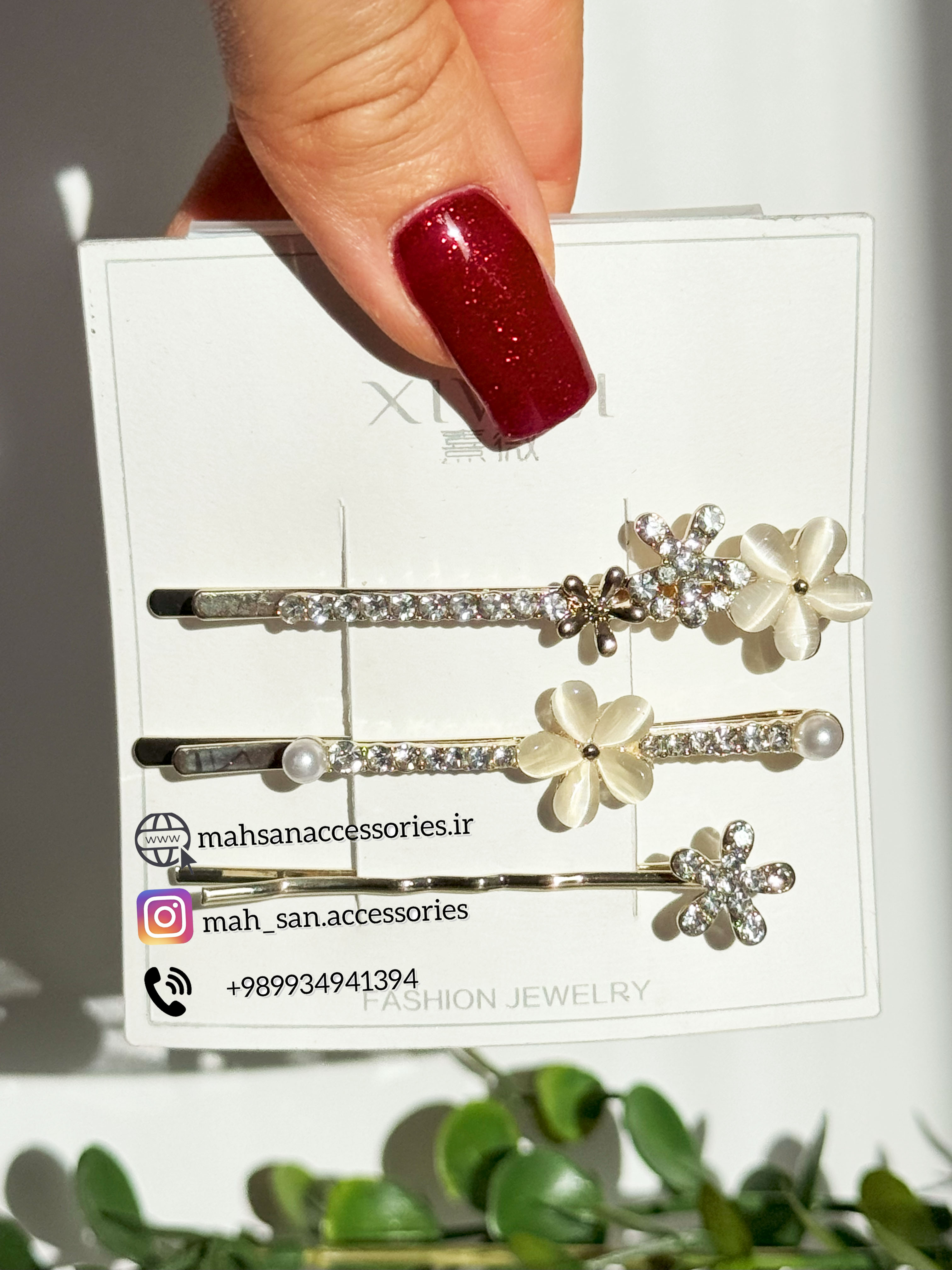 گیره مو گلگون نگیندار مجلسی 3عددی سایز کوچک