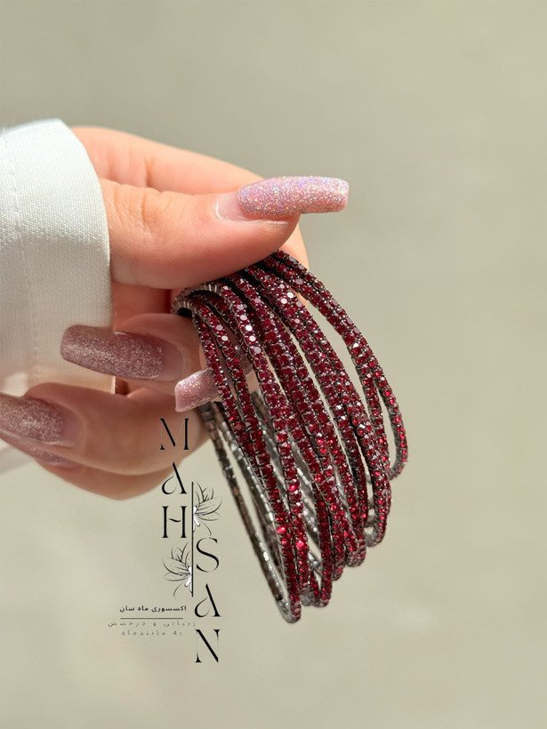دستبند کشی فول نگین جواهرشرابی کد XU2000 هدیه خاص