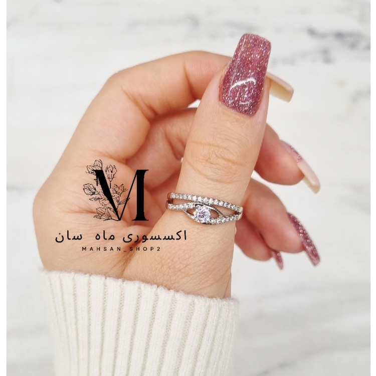 انگشتر تک نگین الماس شب طرح حلقه برند ژوپینگ رنگ سیلور