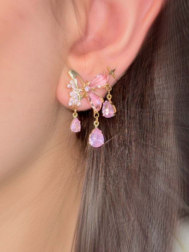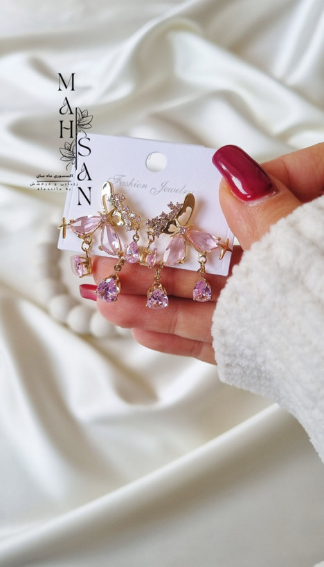 گوشواره پروانه کریستالی صورتی خیلی خاص