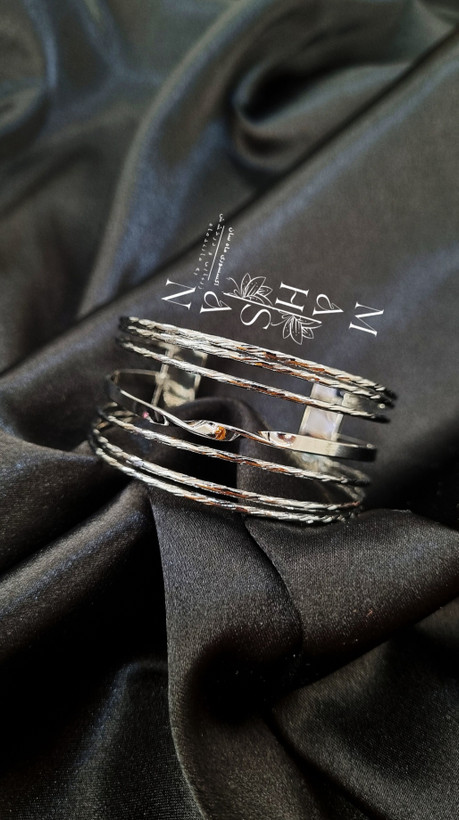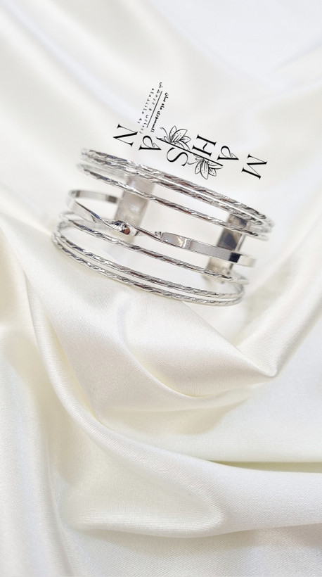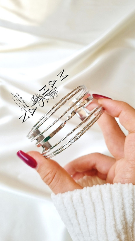 بنگل زنانه جذاب چندرج مینیمال رنگ نقره ای